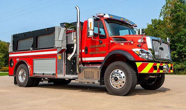 Engine 913 is equipped with a pump, hose, hard suction, placeable Blitzfire monitor, ground ladders, air tanks, tools and a 1,000 gallon water tank.